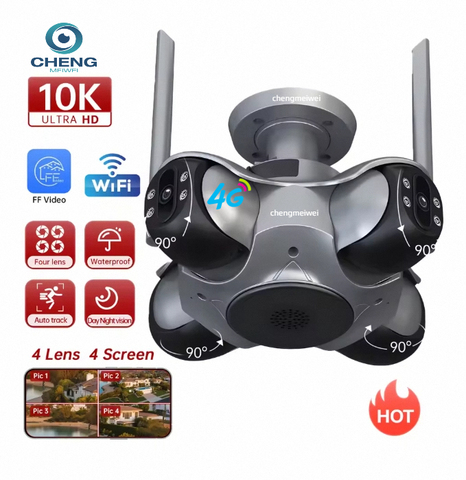 Eseecloud CCTV 4G Carte Sim Caméra Solaire Quatre Objectifs 12MP PTZ IP Extérieur 6K HD Trois Ecrans Wifi Sécurité Suivi Automatique 4K Sans Fil